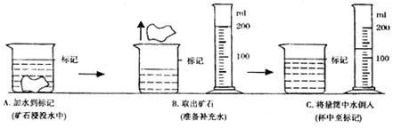 ①因矿石体积较大,放不进量筒,因此他利用一只烧杯,按图所示方法进行测量,矿石的体积是 cm3;