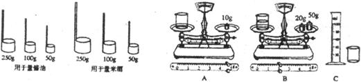 2、小明去某古镇旅游时发现,米酒是当地的一种特产。小店卖米酒和卖酱油都用竹筒状的容器来量取,但量取相同质量的米酒时所用的器具比量取酱油的要大一点,如下左图所示。(2+1+1+2=6分)