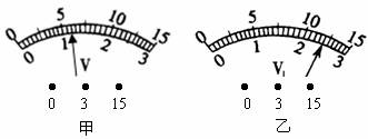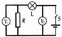 9、在下图所示的电路中,开关S闭合时,电压表V和V1的示数如图甲、乙所示,则该电路中的电流为