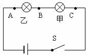 10.如图所示的电路中,电源电压为6V,甲乙两灯规格相同,当闭合开关S后两灯都不亮,现用电压表进行检测,AB两点间的电压为零,BC两点间的电压为6V,造成故障的原因可能是