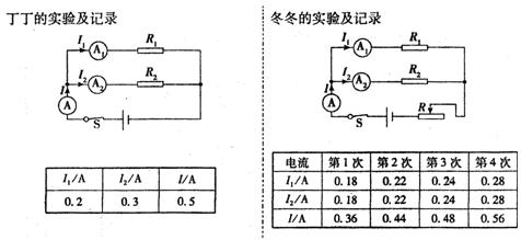 2.丁丁和冬冬同学分别设计了“探究并联电路中电流关系”的实验,他们的实验电路图及数据记录如下所示.