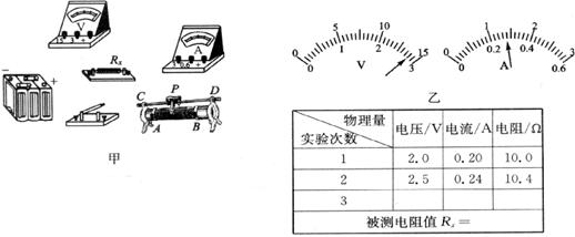 (3)小明同学已将前两次实验的数据记入了表中,第3次实验的电表指示如图乙所示,请将读数填入表中,并完成表中的有关计算.