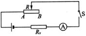 20.如图示,电源电压恒定,变阻器R的最大阻值为R0,合上开关S,当滑片位于A点时,A示数为IA;当滑片位于B点时,④示数为IB.请你写出计算足的表达式(用R0,IA、IB表示)