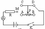 4、如图所示,滑片P向右移动时,电流表的示数减小,则可推断出线头M是与滑动变阻器的接线柱 相连。