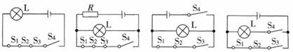 7.小轿车上都装有一个用来提醒司机是否关好车门的指示灯,四个车门中只要有一个门没关好(相当于一个开关断开),该指示灯就会发光。下图所示的模拟电路图符合要求的是
