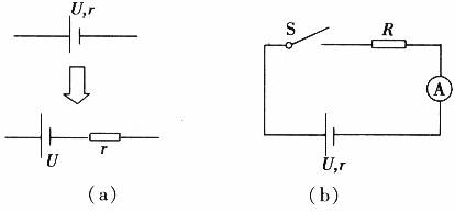 用图(b)所示的电路可以测量出一个实际电源的电阻值。图中R=14Ω,,开关S闭合时,电流表的读数I=0.2A,已知电源电压U=3V,求电源电阻r的大小。