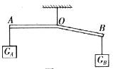 12.如下图所示,杠杆AOB的A端挂重为GA的物体,B端挂重为GB的物体,杠杆平衡时AO处于水平位置,若AO=BO,杠杆自重不计,则GA和GB的大小关系是