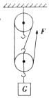 27.(8分)用如下图所示的滑轮组匀速提升重为480 N的物体G,所用拉力F为200 N,将重物提升3 m所用的时间为10 s.