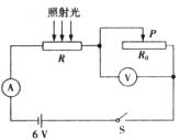 )和电压恒为6 V的电源组成如下图所示的电路,闭合开关,调节 滑动变阻器使电流表的示数为0.4 A时,电压表的示数为2.4 V,此时,光敏电阻所在处的光强为多大?