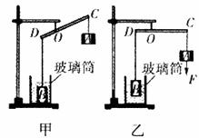 12.如下图甲所示,底面积为50cm2的圆柱形玻璃筒中装有一定量的水,放在水平台面上,底面积为10cm2的圆柱形物体B浸没在水中,杠杆CD可绕支点O在竖直平面内转动,CO=2DO;物体A是质量100g的配重。如下图乙所示,杠杆在水平位置平衡,作用在物体A上的运走向下的拉力F为0.6N,物体B有