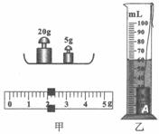 27.莹莹在实验室测量金属块A的密度。莹莹先用调节好的天平测量金属块A的质量。天平平衡后,右盘中所放砝码及游码在标尺上的位置如下图甲所示,则金属块A的质量为 g。然后,莹莹将金属块A放入盛有50ml水的量筒中,量筒中的水升高到如图乙所示的位置,则金属块A的体积为 cm3。由此可计算出金属块A的密度为 kg/m3。