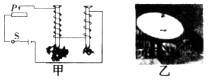 11.下图中,甲图的实验装置是探究电磁铁磁性强弱与____________有关的实验;乙图装置是电视碟形天线.用来接收来自通信卫星传来的___________信号。