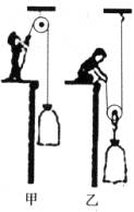 24.如下图所示,用甲、乙两个不同的滑轮把同一货物提到同一高度,使用_________滑轮能够省力,使用_________滑轮机械效率较高.