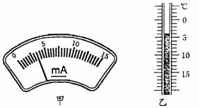 19.如图甲所示的电流表读数为__________。如图乙所示的温度计的读数为________。