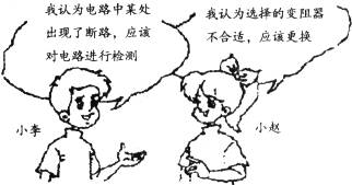 在正确选择电阻丝后,他们又选择了两个变阻器中的一个,接着连接好电路,闭合开关进行实验。实验中他们发现变阻器的滑片从右端a向左端b 滑动直到接近b 的过程中,电流表和电压表虽有示数,但示数很小且几乎无变化。针对上述现象,小李和小赵交流了各自的看法,并提出了改进意见[见下图] 你的看法和改进意见是________________________。