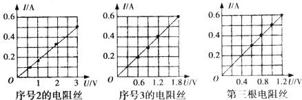 在实验中,他们正确操作,并对测量的数据进行了适当的处理,分别作出了下图所示的这三根电阻丝的I一U 关系图象。