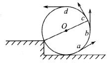 22.如图所示,为了使圆筒能越过障碍物,则在何处施加的作用力最小 ( )