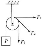 13.如下图所示,沿三种不同的方向拉绳使物体P上升,所用的力分别是F1,F2,F3,则 ( )