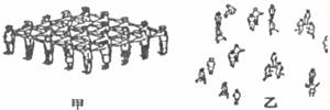 1.某老师在引导学生理解固体、液体和气体的微观结构时,带领学生做游戏,用人群的状态类比物体的状态。如下图所示甲、乙、丙三种情景分别对应的是