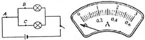 (2)小丽把电流表接入A点,当闭合开关时,发现电流表指针如上图所示,出现这种故障的原因是____________________________________。