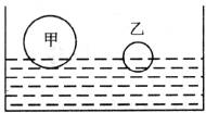 13.如下图所示,甲球比乙球大且比乙球重,都漂浮在同一液面上,下列说法中,正确的是 ( )