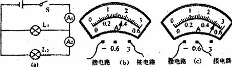 4.如下图所示,当开关S闭合时,两只电流表的示数分别由(b)(c)两图读得,则通过电灯L