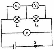 4.如图所示电路中,电压表V的示数是12V,电压表V
