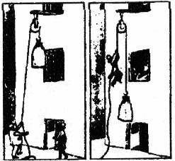 25.如下图所示为黄石货运码头的繁忙的景象:塔式起重机正吊起钢板装到船上(图a);电动叉车载着木箱运到仓库里去(图b);电动机带动传送带将一包包水泥匀速送到岸边堆放,等待装船(图c);工人将油桶沿斜面滚上卡车运离码头(图d).请你观察四幅中所示的机械和工作情景,写出你知道的部件所包含的物理知识或根据工作情景写出相关的物理知识,参照示例完成下表.