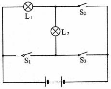 8.如图所示的电路中,(1)要使灯L1、L2串联,则应闭合开关________;(2)要使灯L1、L2并联,则应闭合开关________;(3)能单独点亮的是灯________,这时应闭合开关________;(4)如果同时闭合开关S1、S3,则会发生________.