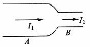 9.如图所示的导线,A处导线的直径大于B处导线的直径,那么通过A处和B处电流强度的关系I1___________I2.(填“大于”、“小于”或“等于”)