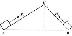 15.如图所示,将物体分别沿斜面AC和BC推到顶端C,所用的力分别是F1和F2,所做的功分别是W1和W2,不计摩擦,比较它们的大小 ( )
