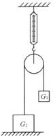 17.如下图所示,不计滑轮重,G1=l00N,G2=500N,若弹簧秤上的读数为F1,物体G2对地面的压力为F2,则 ( )
