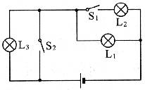 7.如下图所示,当S1、S2均断开时,电灯__________工作,它们的连接方法是__________;当S1、S2均合时,电灯__________工作,它们的连接方式是__________.