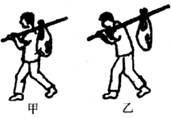11.一个人用棒挑着重物像下图中甲、乙那样扛在肩上行走,比较这两种方法,错误的说法是 ( )