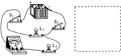 18.如图是用电流表测通过L1电流的实物图,且通过灯L1的电流约为1A.图中有三处错误,请指出,并在右边虚线框内画出正确的电路图。