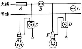 4.小进学完家庭用电的知识后,安装了某房间的照明电路(如下图所示),经检查有三处错误,它们是_______,_______,_______.(填写字母代号并说出错误原因)