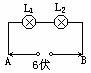 2.如图所示的电路中,A、B两端的电压是6V,灯L1的电阻是8Ω,通过的电流是0.2 A,求: