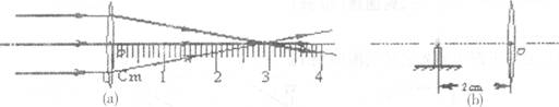 28.一束平行光线经凸透镜折射后的传播方向如图(a)所示,由图可知,此透镜的焦距大小约为__________cm;若将一烛焰放在此凸透镜左侧2cm处,如图(b),则透过透镜可以看到一个___________、___________的虚像。