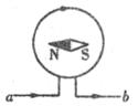 8.如下图所示,在圆形线圈的中点有一小磁针,当通以由a到b的电流时,小磁针的北极将___________。
