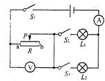 求:(1) 滑动变阻器的滑片P放在a端时,闭合开关S1、S2、S3后,电压表和电流表的读数是多少?