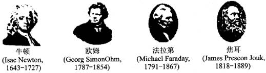 1.下图为四位著名科学家的画像.他们在科学事业上为人类做出重要贡献.人们永远纪念他们,并将他们的名字命名为物理量的单位,请任选两位填在表中.