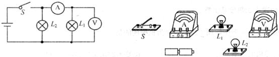 19.根据下面的电路图,用笔画线代替导线,连接下面的实物图,电压表和电流表都用小量程。
