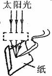 12.下图是太阳光通过虚线框内某光学元件后将纸烧焦的现象。由此可知该元件是 ,用到这一元件的光学器件有 (只举一例)。