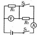 16.下面左图所示的电路中,用电器R1上标有“6V 3W”的字样,当开关S1、S2同时闭合时,电流表示数为0.5A,则电压表测 两端的电压,其示数为 V,再将开关S2断开,电流表示数变为0.3A,则R1的实际功率为 W。