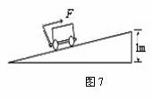 8.要把木箱拉到斜面顶端,小明想办法把木箱放在小车上,用沿斜面方向的轻质细绳把车和木箱匀速拉上斜面顶端(如图7所示),整个过程历时10s。已知木箱重G=400N,车重80N,对车的拉力F=125N,斜面长L=4m,斜面高h=1m,则对木箱做的有用功是 ,总功是 ,斜面的机械效率是 ,利用斜面能 (填“省力”或“费力”)。