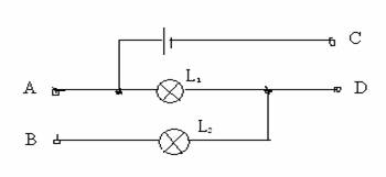 3、如图只使L1发光,则用导线连接_______若连接B、C则L1、L2_______联。需要L1、L2并联,则连接A、B后,C还应与_______连接。