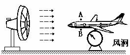 24.如图所示,在某科技馆内陈列着一个模拟“风洞实验室”,一架重15N的飞机模型固定在台秤的秤盘上,当迎风吹向飞机的风速υ=20m/s时,台秤的示数为7N,则飞机模型得到的升力是__________N。设由于空气流动,在飞机模型的上方A点和下方B点产生的压强分别为pA、pB,则pA_________pB(选填“>”“<”或“=”)。