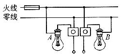 6.下图中A、B两点均为螺口灯泡的螺旋部分,当两开关都断开后,站在地上的人用手直接接触A点时,他________触电,用手直接接触B点时,他________触电(选填“会”或“不会”).