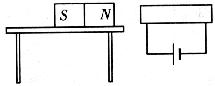 (3)下图中的磁体保持静止不动,受到桌面的摩擦力水平向右.请在图中画出螺线管的绕线。