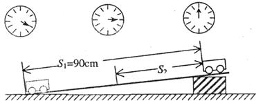 5.第三小组的同学们在“探究速度的变化”的实验中,所用秒表每格为1s。小车从斜面顶端到底端的路程是90cm。如下图所示,小车运动的上半段的平均速度